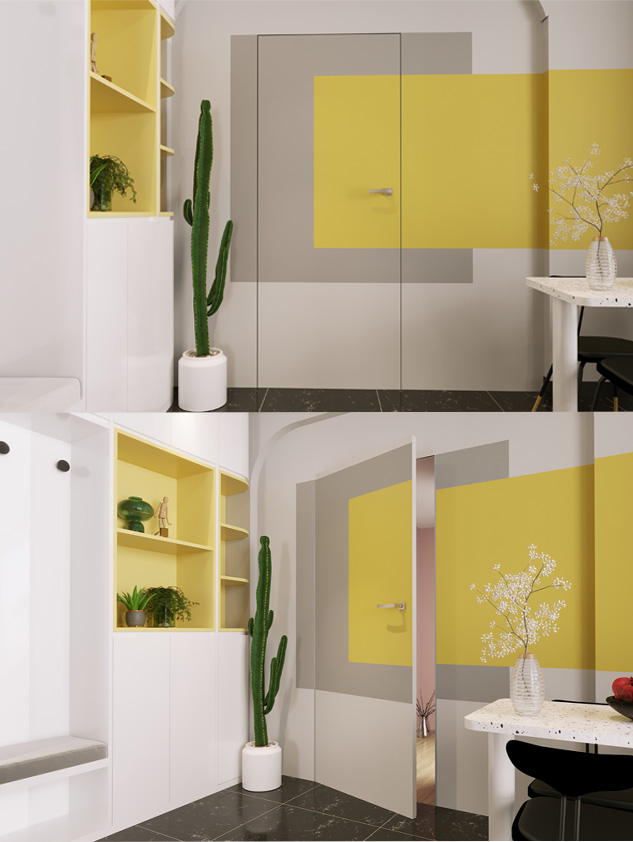 Vrata, ki se poravnajo s steno in postanejo del prostora.